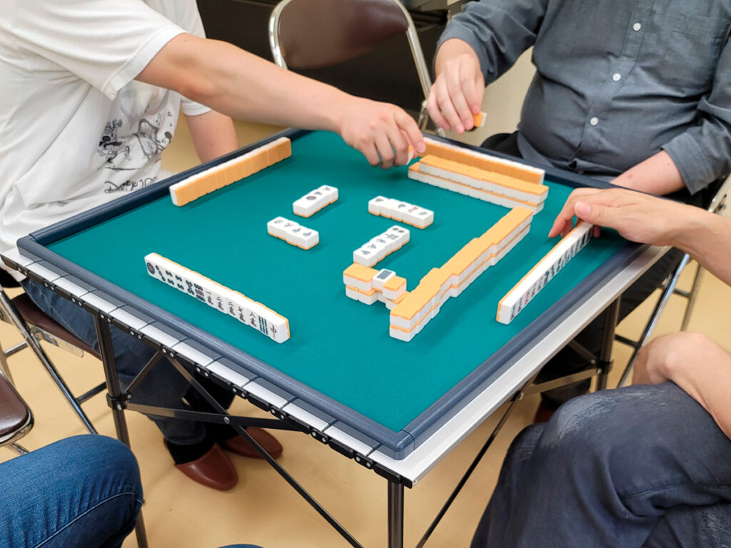 仕事終わりや休日に集まり、リラックスした雰囲気で楽しむ麻雀部。部署の垣根を越えた交流が生まれ、職場の風通しの良さを支える活動のひとつとなっています。